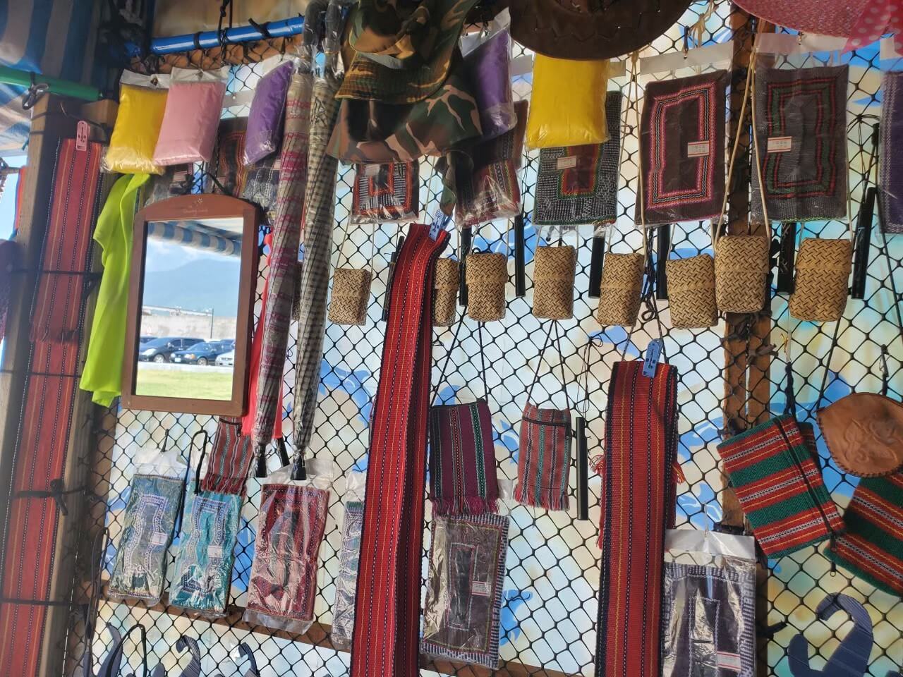 這些攤販中有一個攤販比較特別,他是賣一些手工編織的包包和手環,種類雖然不多,但是每一個都很有特色,而且雖然是布編織的包包,但是卻非常堅固,我們有買一個讓媛媛背,她也喜歡的不得了一整天都沒拿下來