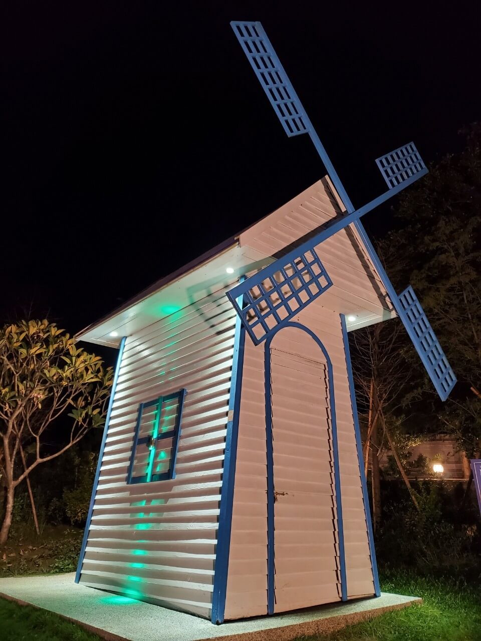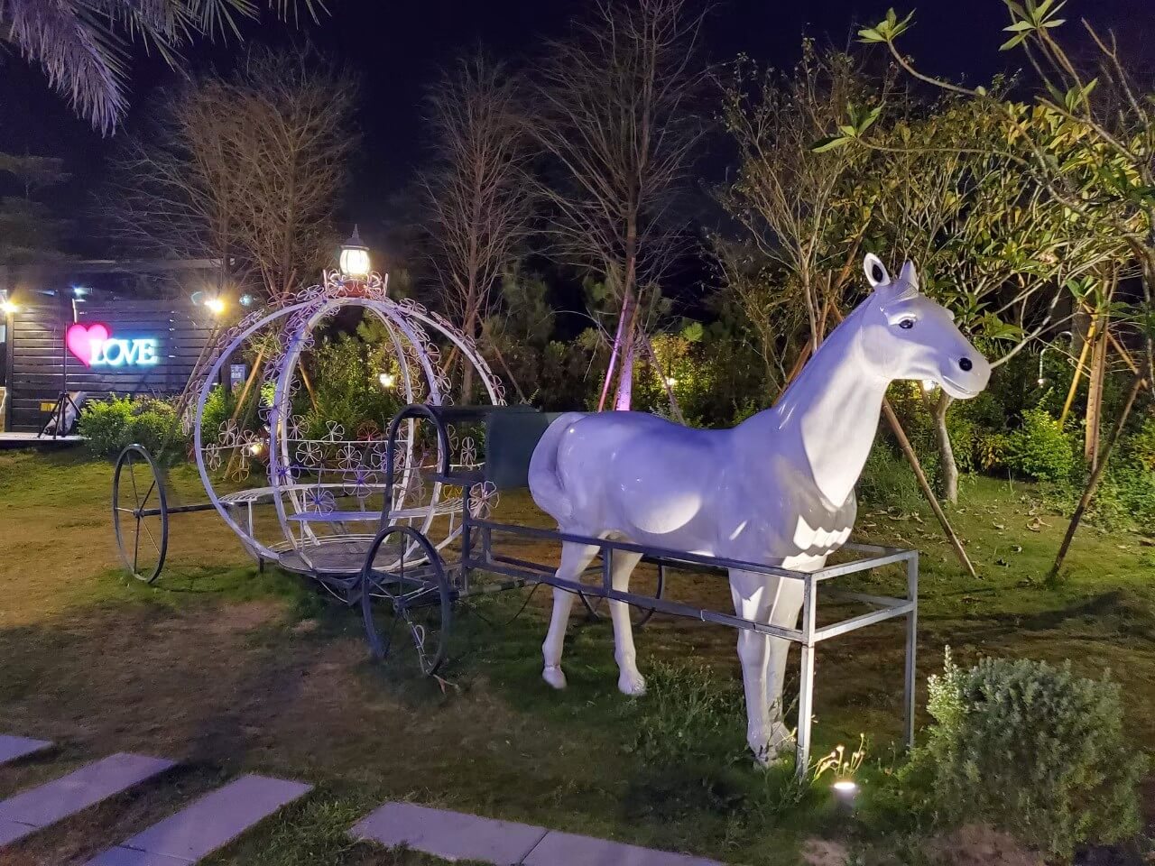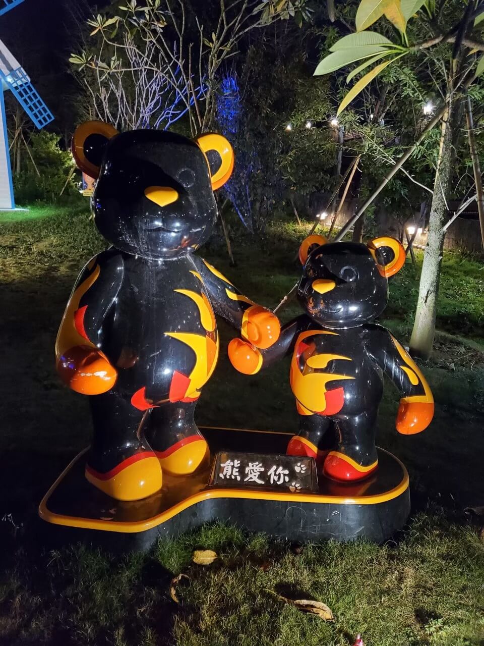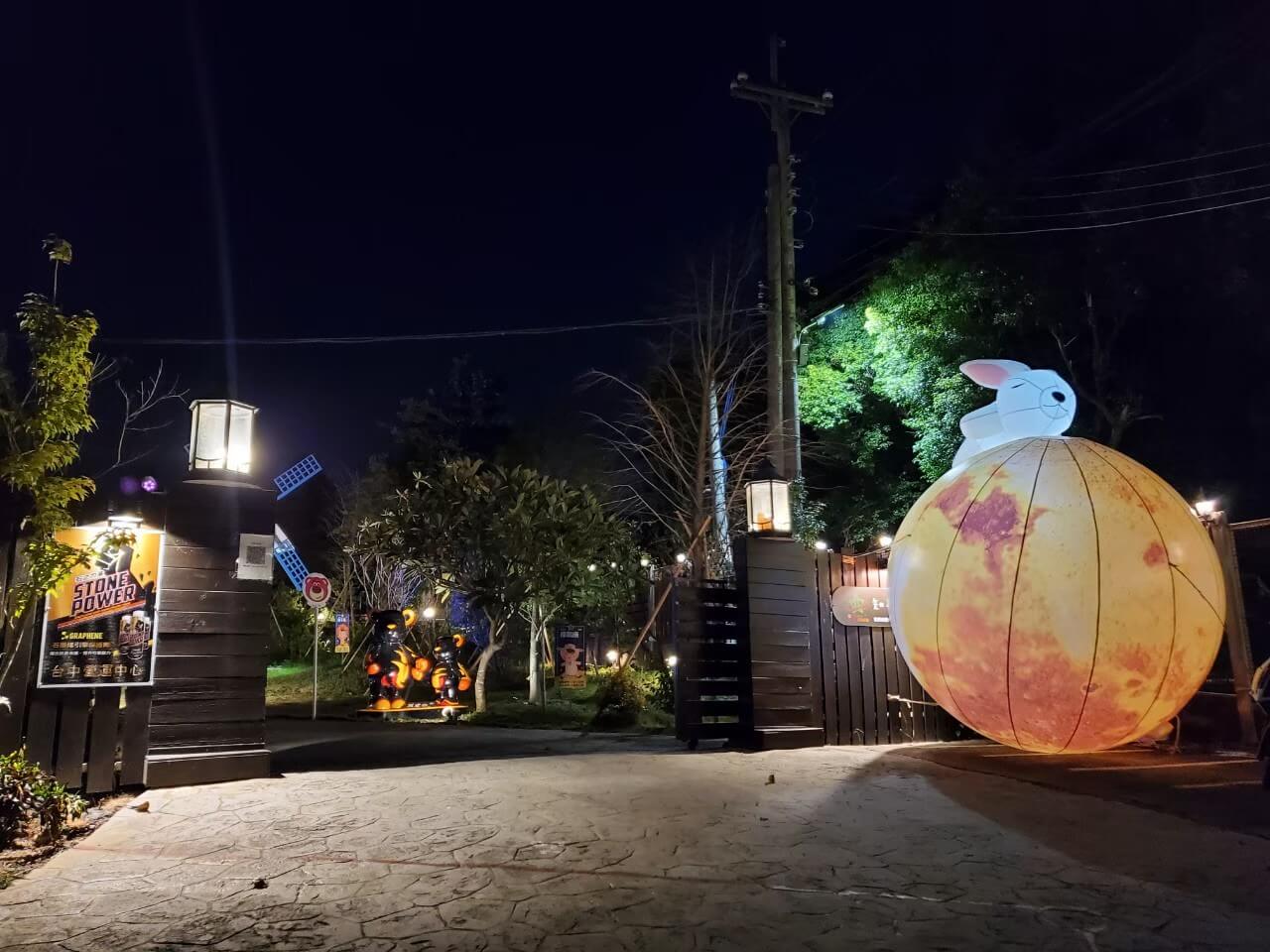 在餐廳入口旁,有看到很醒目的月亮和兔子的充氣裝置,想必是為了中秋節應景吧,進入園區也能看到很多藝術裝置,不過藝術裝置這邊的燈光不多,拍照起來就顯得比較昏暗