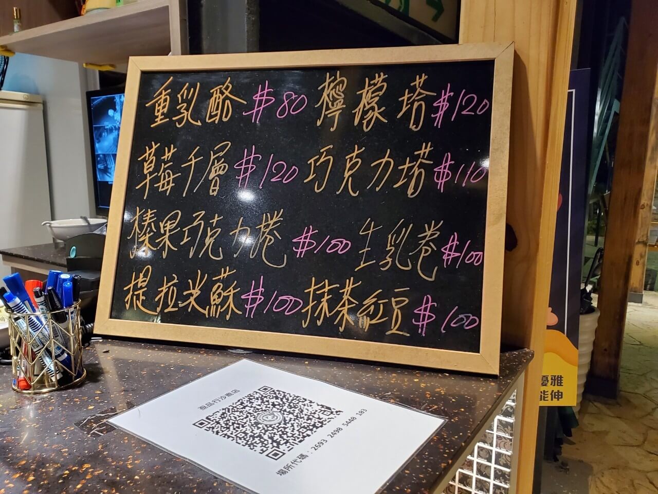星星複合式夜景餐廳也有販售甜點,不過沒有在菜單上,因為每天的品項都不同,所以價格和品項都是寫在櫃檯旁的小板子上