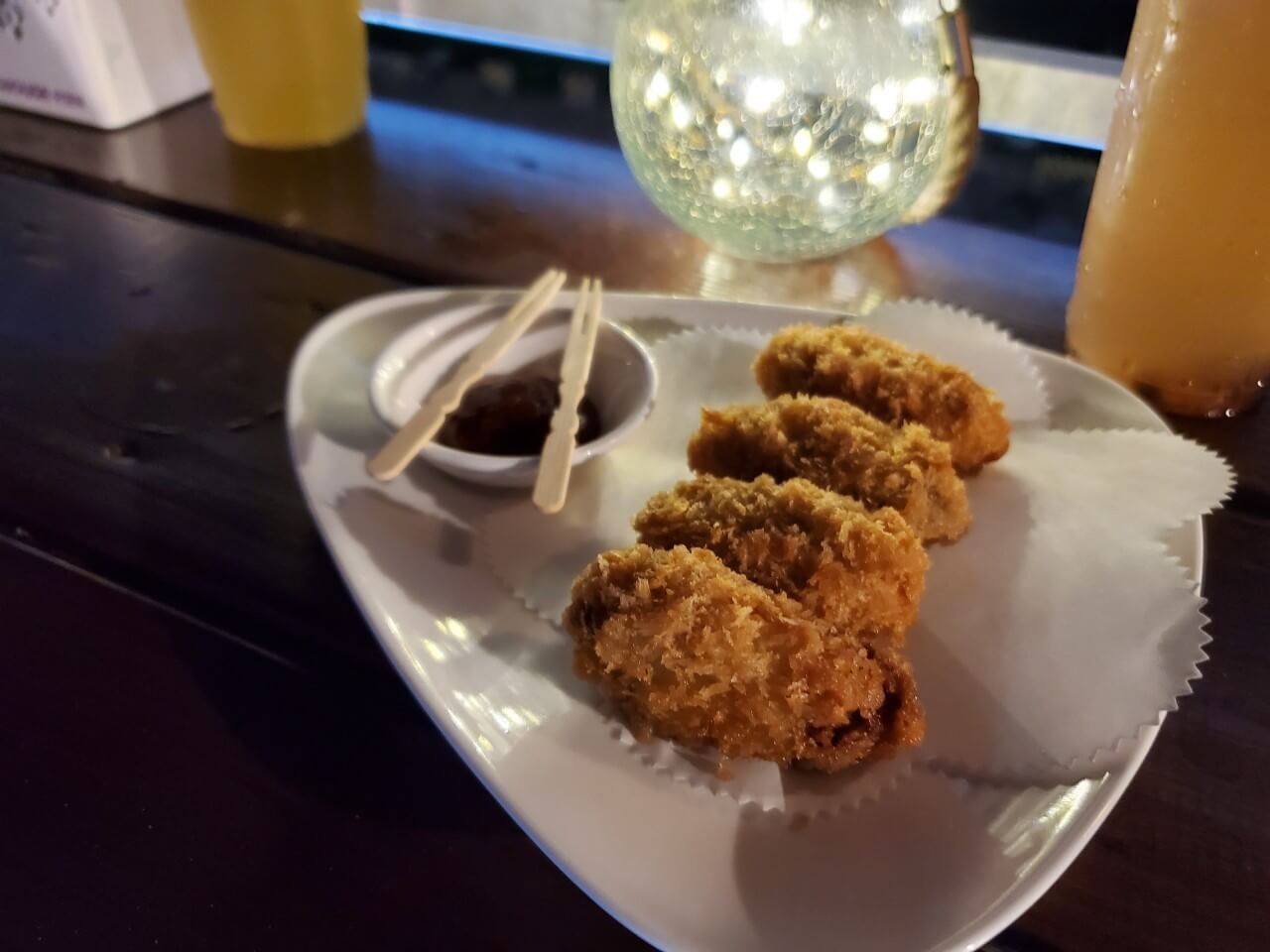 炸生蠔吃起來沒有很重的腥味,外皮很酥脆,我自己還蠻喜歡的,而草莓千層也讓我很驚艷,除了草莓因為不是當季而比較偏酸以外,千層蛋糕整體吃起來軟綿綿的,中間的奶油也不膩口