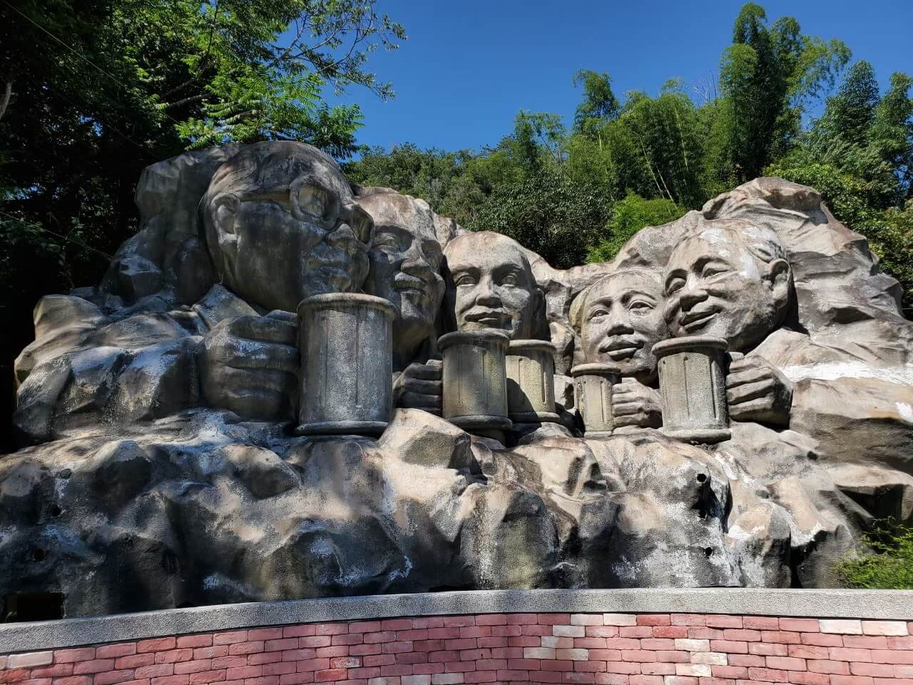 在停車場的樓梯最上方,還有仿照國外的石頭雕刻像,雕刻出五位總統的容貌,手上還拿著杯子,像是在齊聚一堂乾杯一樣