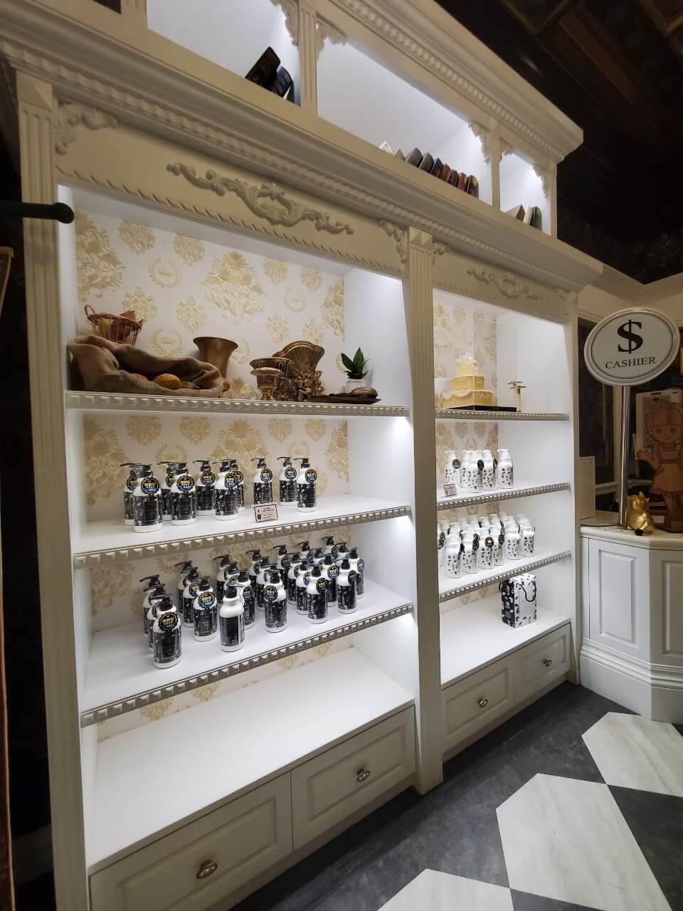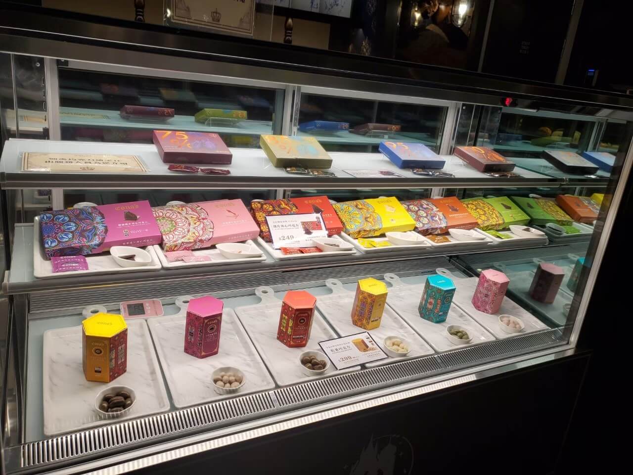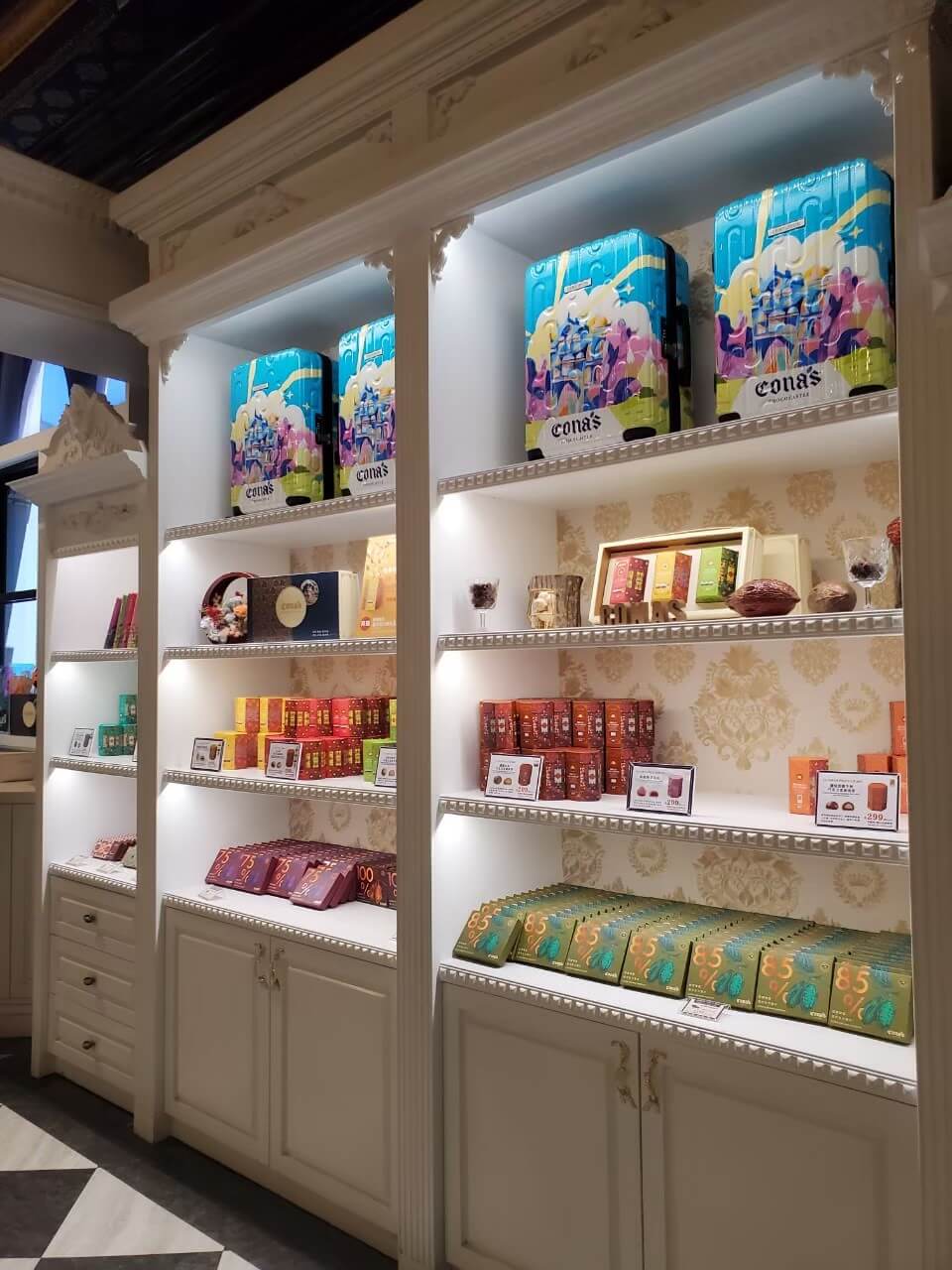妮娜巧克力夢想城堡總共有三層,第一次除了一進門看到的光雕秀舞台以外,剩下的空間就是販賣跟巧克力有關的商品,雖然空間不大,但是商品種類很多,讓我看得眼花撩亂,我看有不少人都買了好幾千塊的巧克力回去
