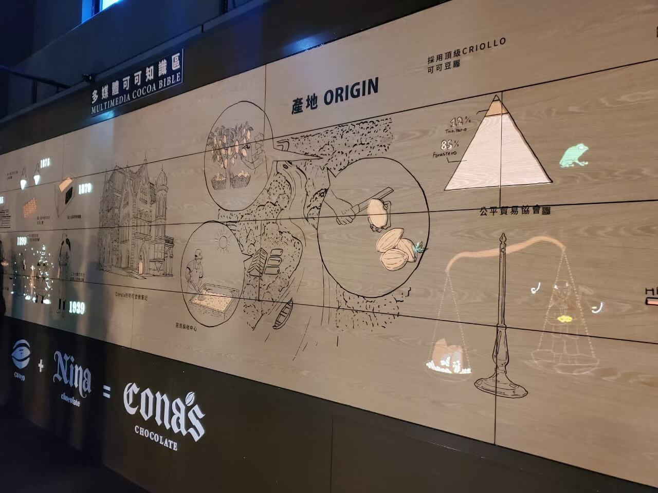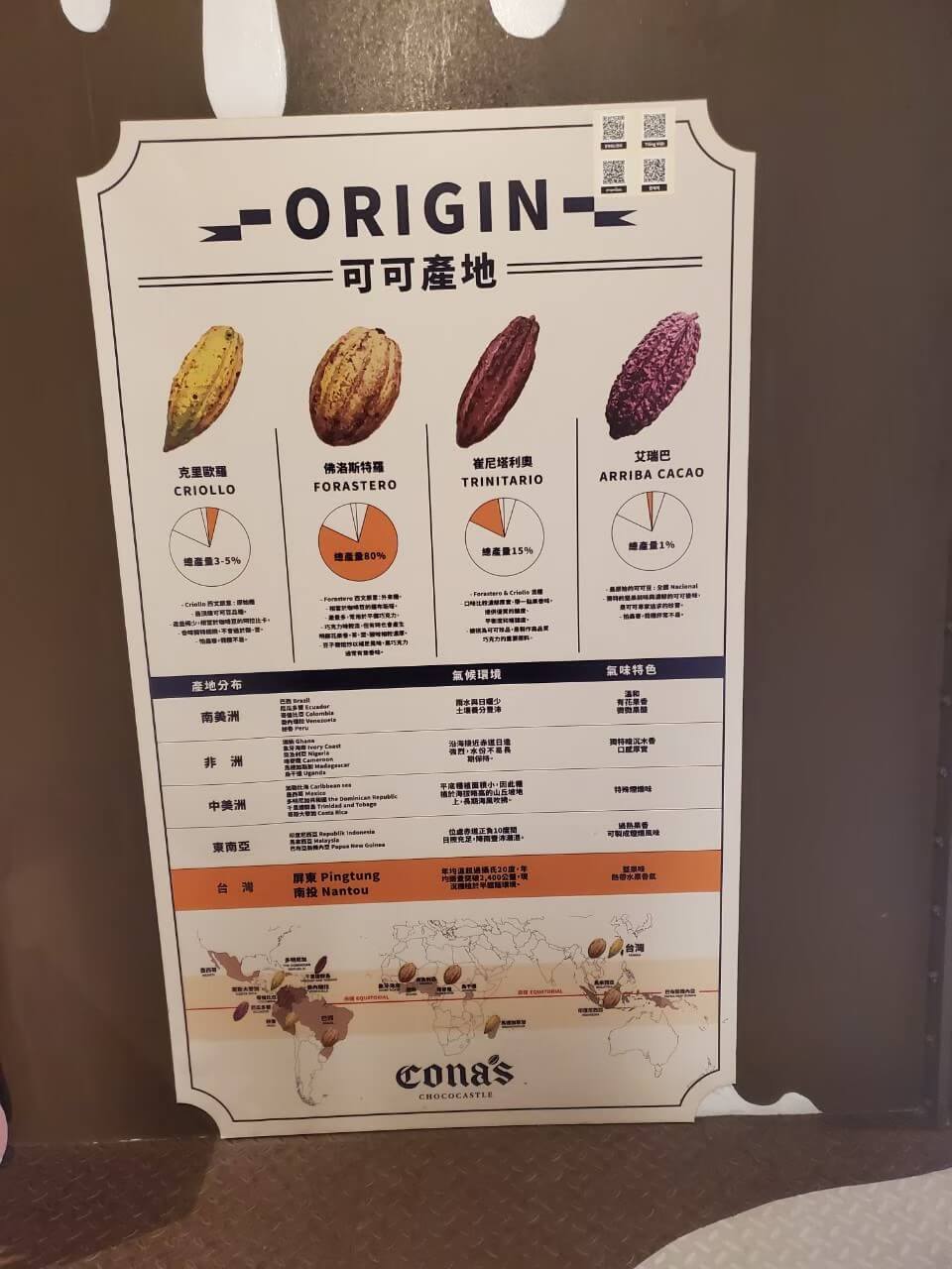 妮娜巧克力夢想城堡第三層就是巧克力生產線、介紹及互動機的地方,看了介紹才發現原來世界上的「可可」分成這麼多種,而且每一種吃起來的風味都不一樣