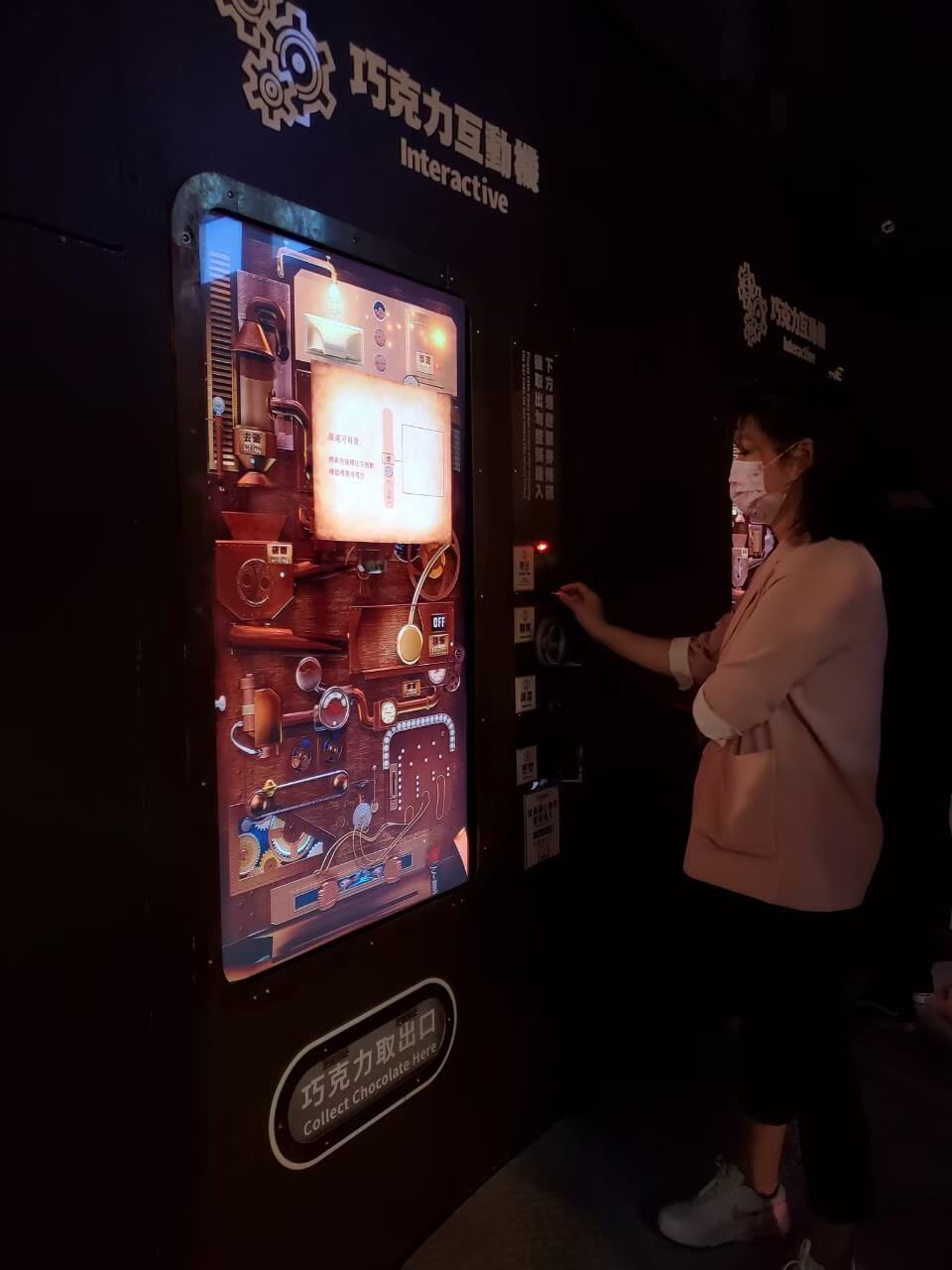 不過介紹的地方不多一下子就看完了,大家都是在排隊要玩互動機,互動機到最後還會有真的巧克力掉下來,難怪小朋友們都乖乖排好隊