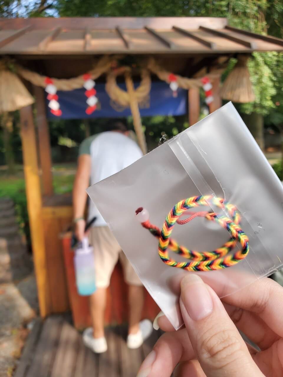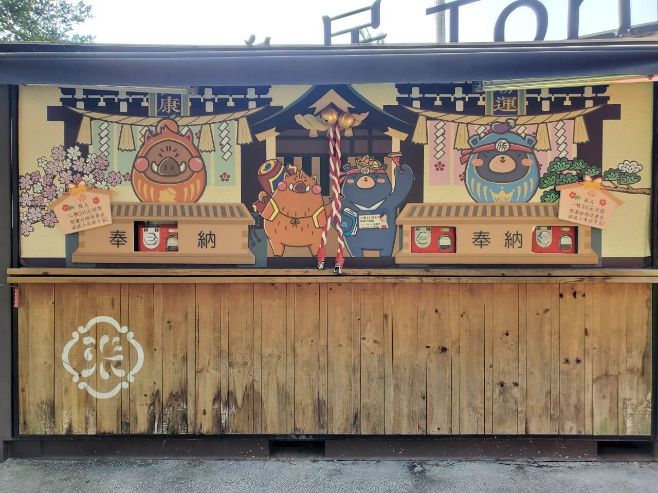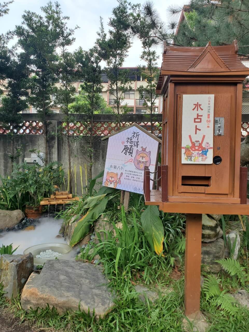 在鳥居喫茶食堂的戶外空間中,有很多有趣的互動遊戲,像是開運扭蛋機、神社祭拜、寄明信片等等,而且神社祭拜還可以拿到一條祈福五色繩,走一圈其實可以玩蠻多東西的