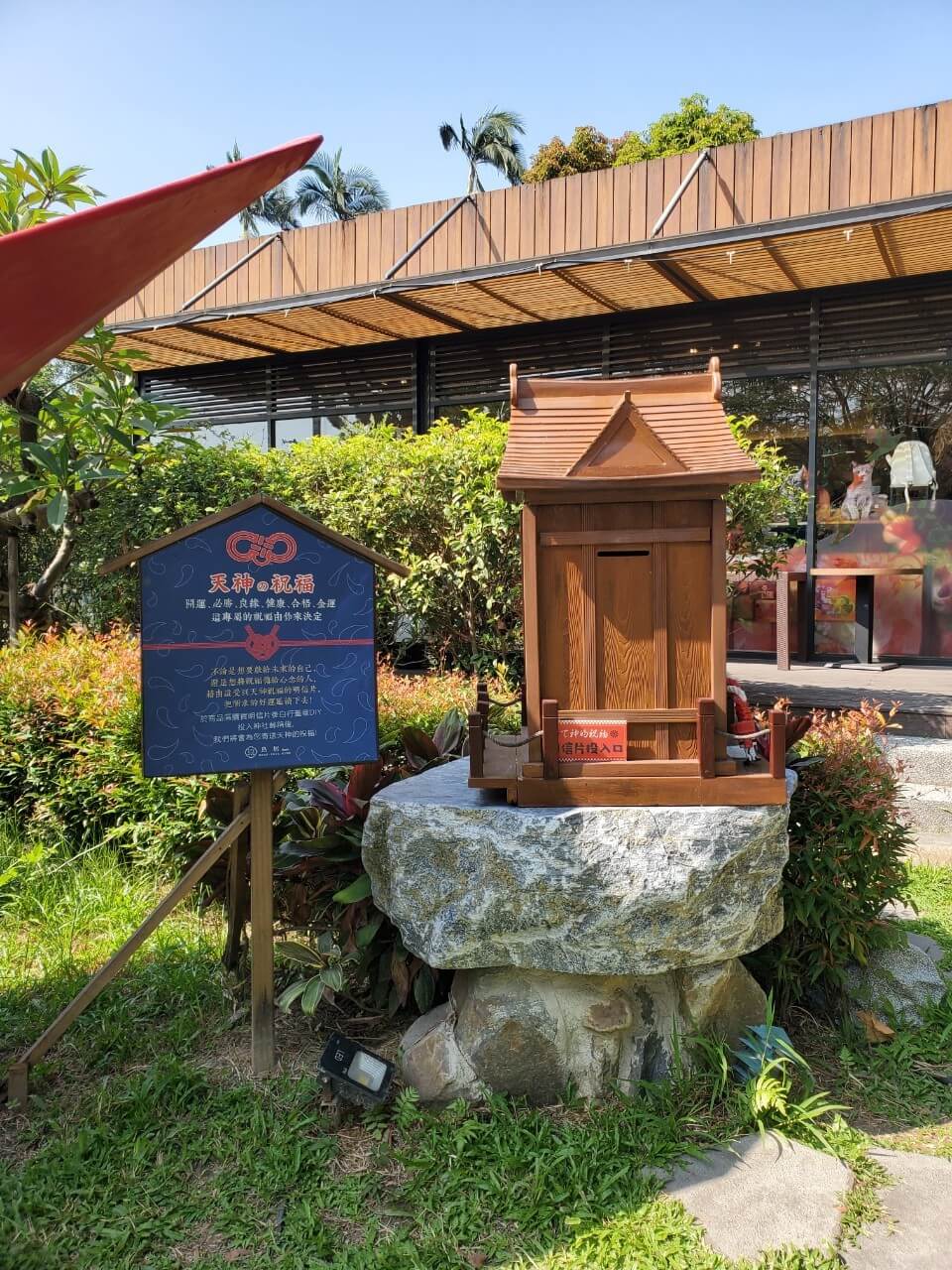 日本的神社幾乎都是福神惠比壽,而在鳥居喫茶食堂則是供奉福德正神-土地公,形成了鳥居喫茶食堂有著日本神社的外觀,裡面住著臺灣神明的有趣景象