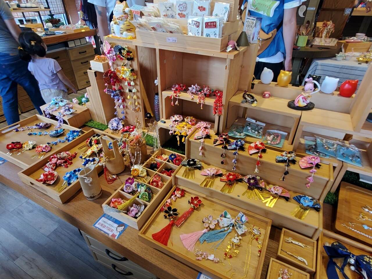 在餐廳入口旁,有一間小小的商店,這裡除了賣各式各樣的產品以外,還可以租借和服,其中差點讓我失心瘋的就是那些日式頭飾,看起來精緻又可愛,只可惜媛媛頭髮不夠長,我只能作罷