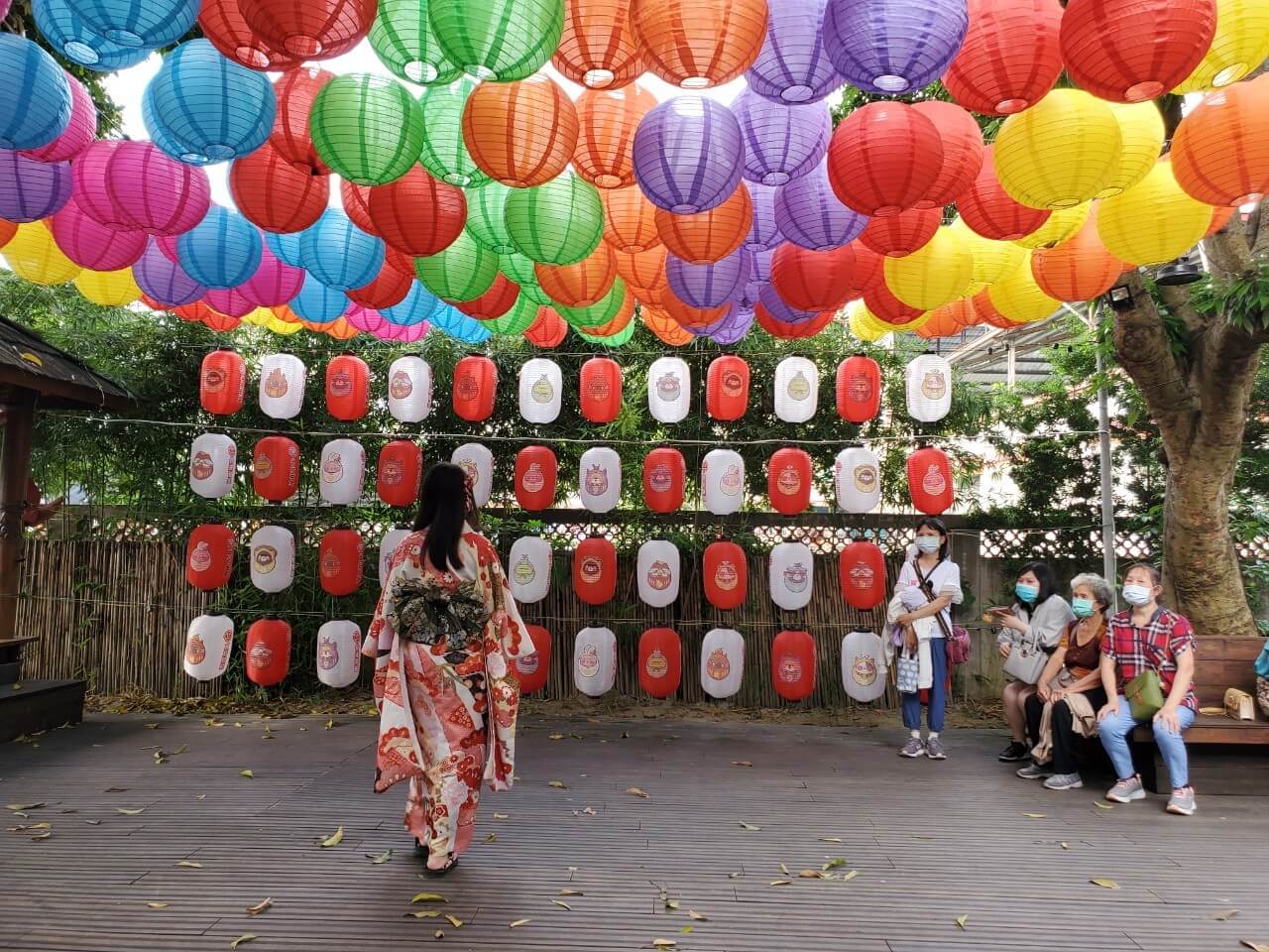 燈籠、紙傘、涼亭,這些必備的日式風格全部都有,而且這裡的人比前庭院的人來的少很多,當天看到有女孩子穿著和服來到這裡拍照,真的只能說超級適合、超級好看的