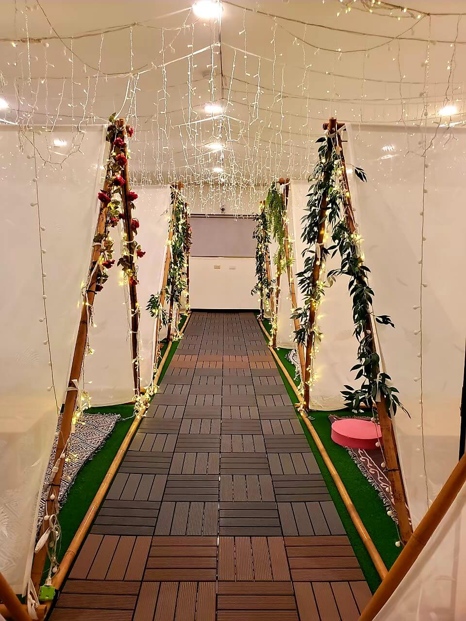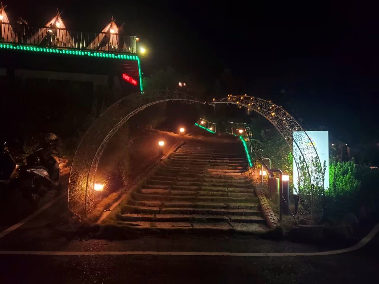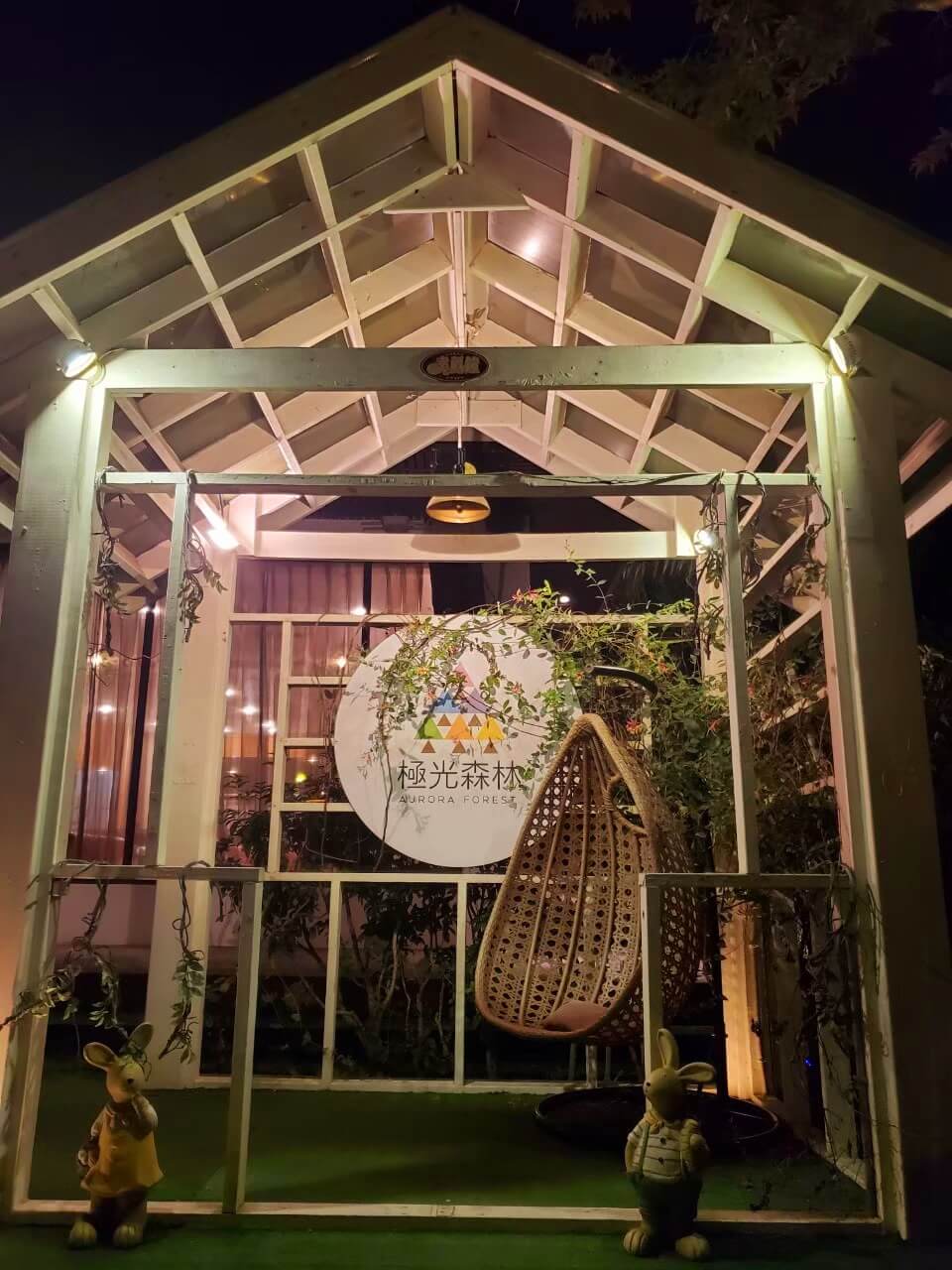 極光森林 Aurora Forest的戶外造景其實並不多,除了從樓梯上來的這邊有一個涼亭和戶外座位區旁有個打卡點外,就是在餐廳前方有三個帳篷可以拍照,和其他的夜景餐廳比起來會顯得比較單調