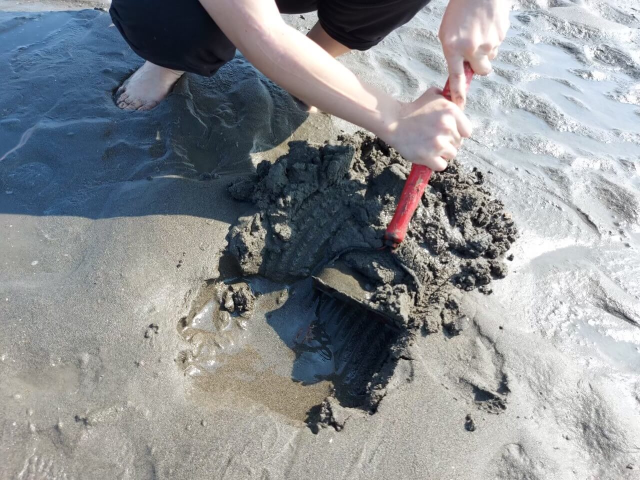 雖然每一次蹲下去挖沙又撲空的時候,會覺得很氣餒,但是能夠體驗挖蛤,我還是覺得很好玩,尤其是小朋友,這根本是正當挖沙玩水的理由啊