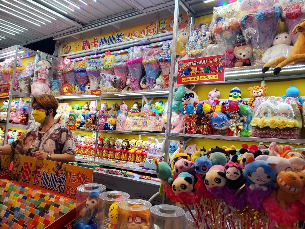 在彰化景點 精誠夜市裡有一個玩樂攤販前聚集了很多人,叫做卡片抽抽樂,花少少的金額可以抽好幾張卡片,如果卡片上的數字對應到後方獎品的數字範圍內就可以把獎品帶回家