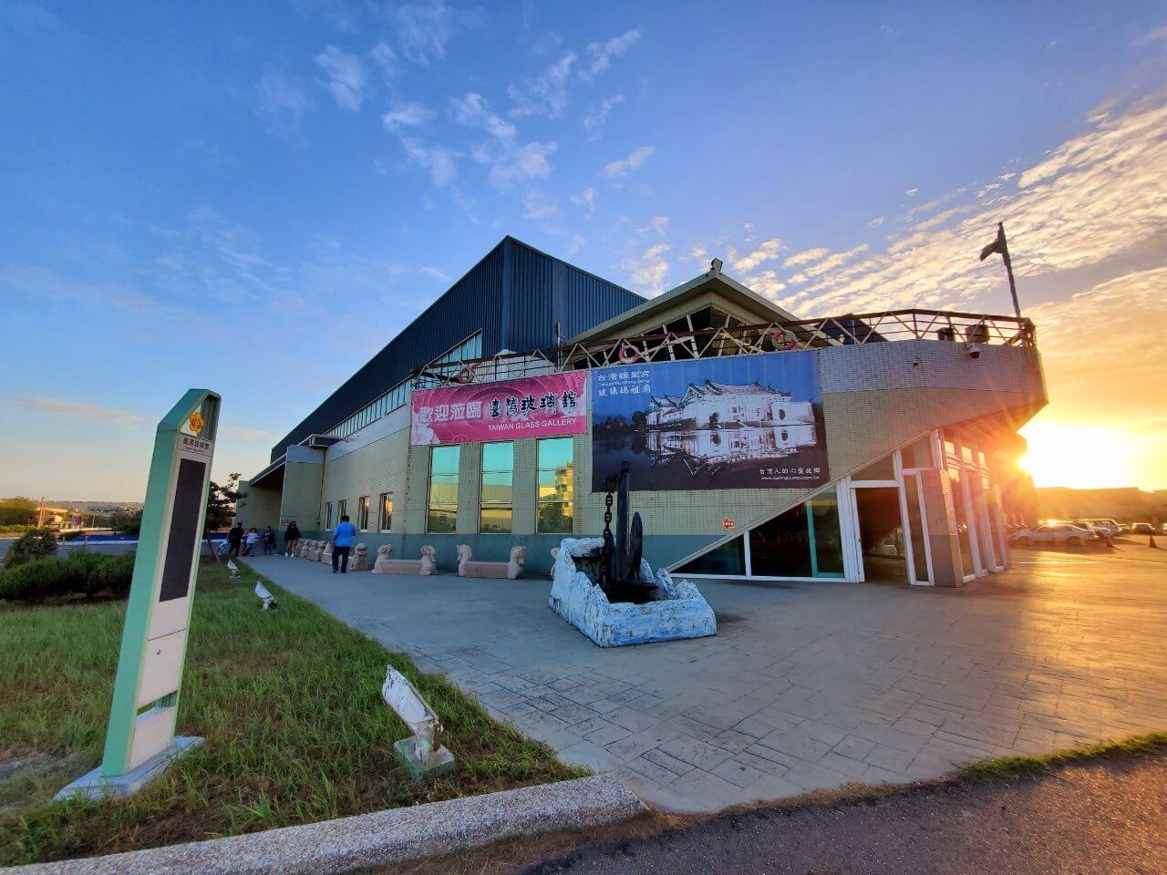 而有一旁船隻形狀的建築物,則是彰化景點 臺灣玻璃館,這是一間不用收取門票費的觀光工廠,當天到訪的時候,門口有工作人員查看實聯制和量體溫,防疫措施做的很落實