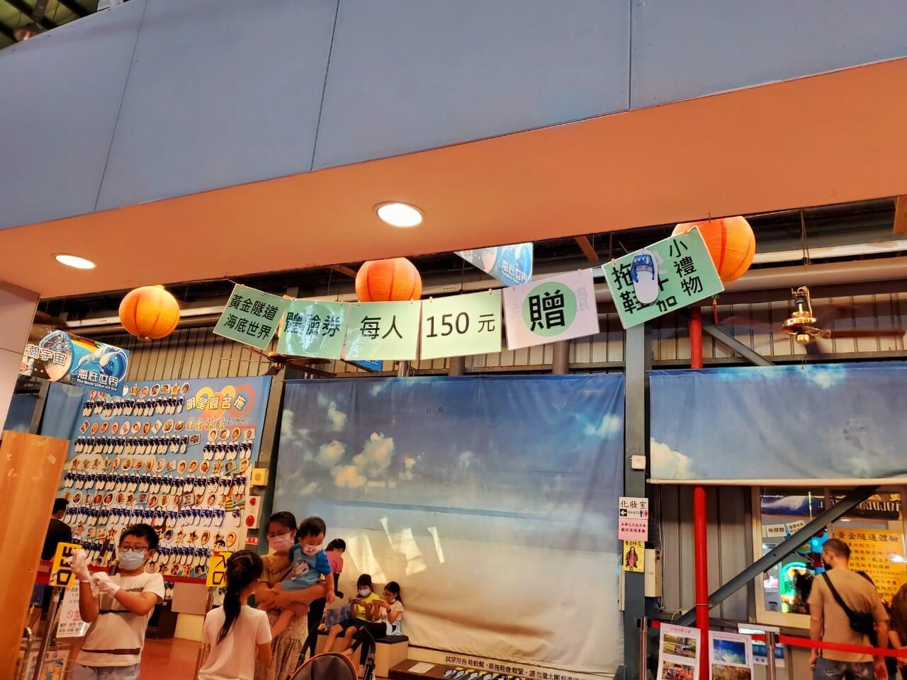 在兒童遊戲區旁邊,就是彰化景點 臺灣玻璃館的著名場景之一「黃金隧道」,黃金隧道是運用玻璃打造的類似迷宮的魔幻空間,要進去之前要先到櫃檯購買門票,一個人150元,但是有附贈藍白拖和杯子,我覺得CP值很高