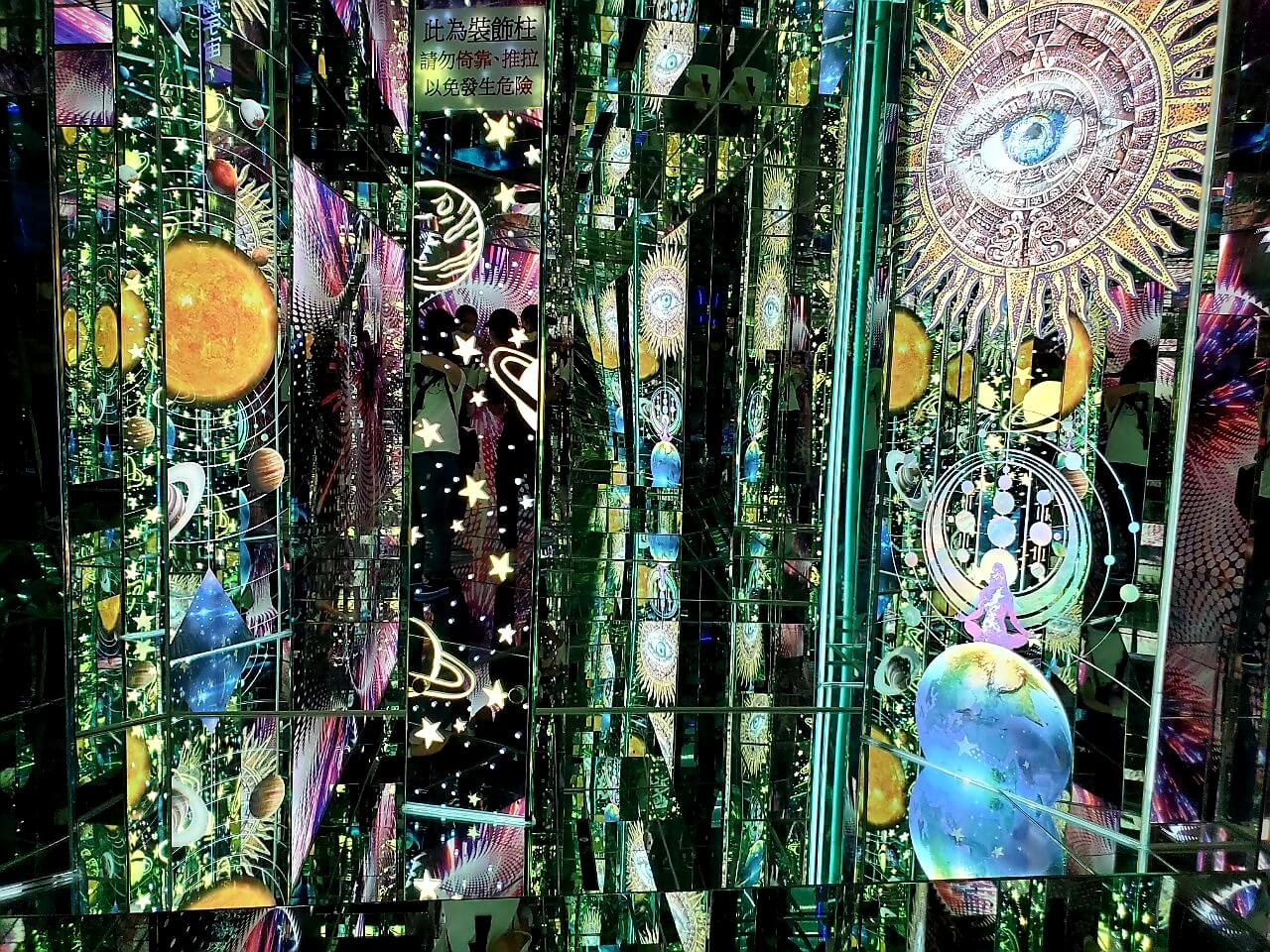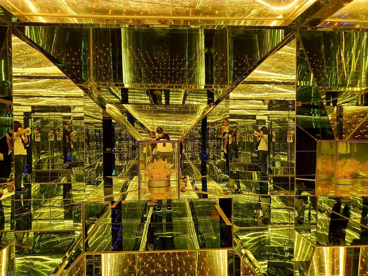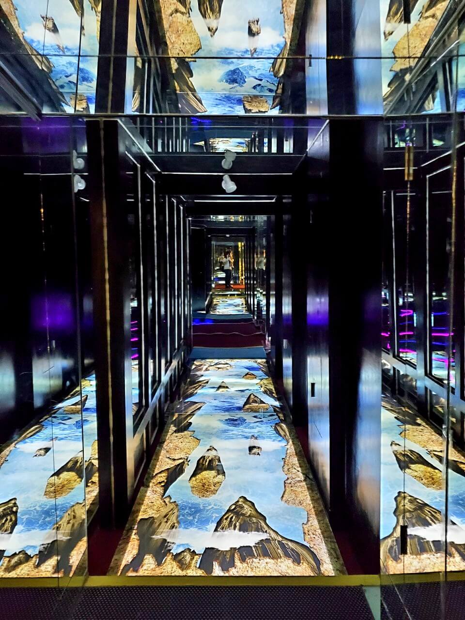 一進去就讓我發出驚嘆聲,看起來就像來到魔幻空間,如果不戴著手套摸著牆壁走,真的會很容易撞牆,所以大家在參觀的時候,要小心慢慢走