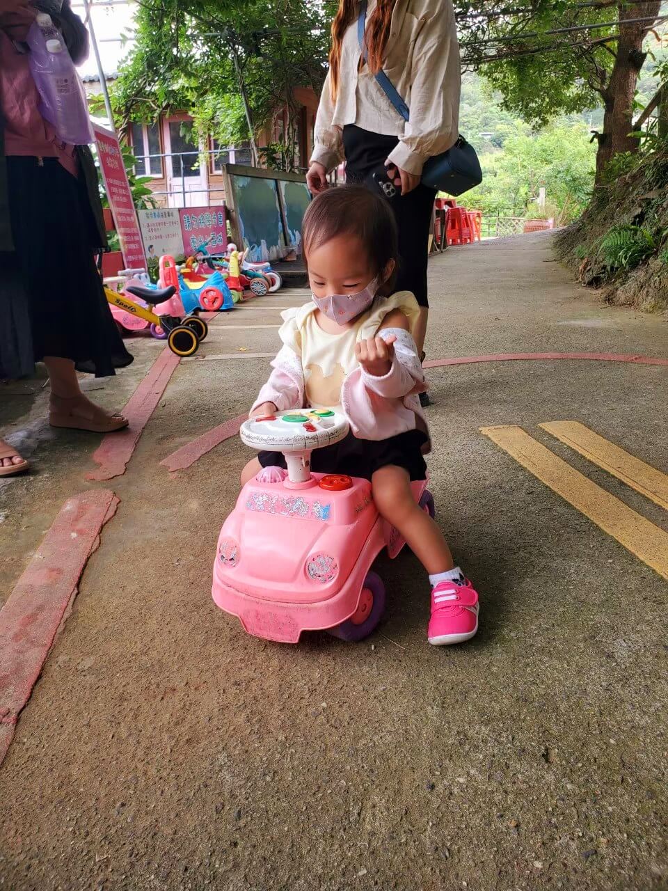 新北景點 桃樂絲森林有規定兒童平衡車只能在兒童車道騎乘,不過不知道是不是因為都放在戶外,有幾輛兒童平衡車的狀況已經不是很好,看起來也比較髒一點