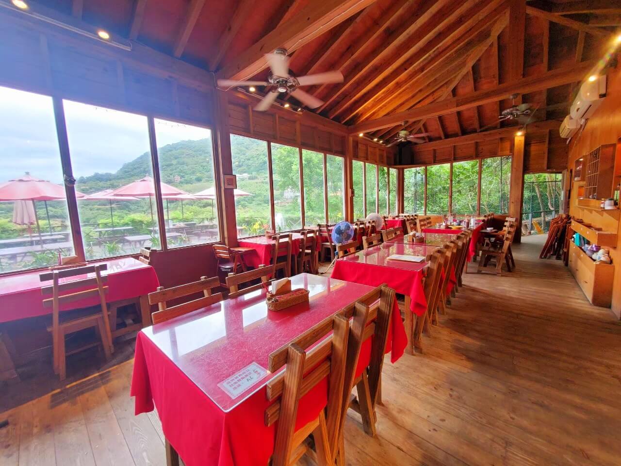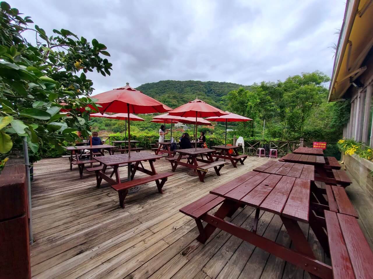 其實參觀路線還很長,但是抱著一個小朋友我們的體力實在是吃不消,就沿著原路回到了餐廳的地方,新北景點 桃樂絲森林的座位不多,分為室內和室外的,室外座位區的視野挺不錯的