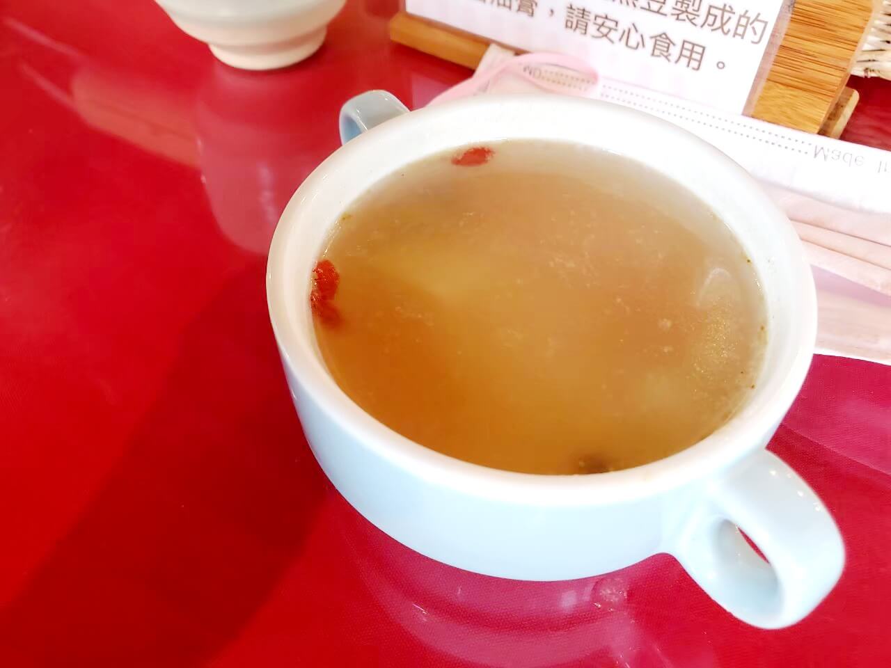 柚子醬鬆餅吃起來清爽順口,不愛吃甜的我都把它吃光光了,而油香炸雞套餐的雞排肉比盤子還要大,肉質吃起來也不柴,附上的湯品也香醇好喝,讓我們有點意猶未盡