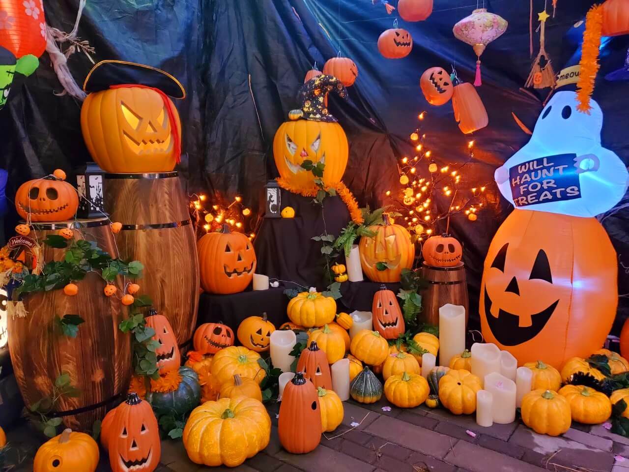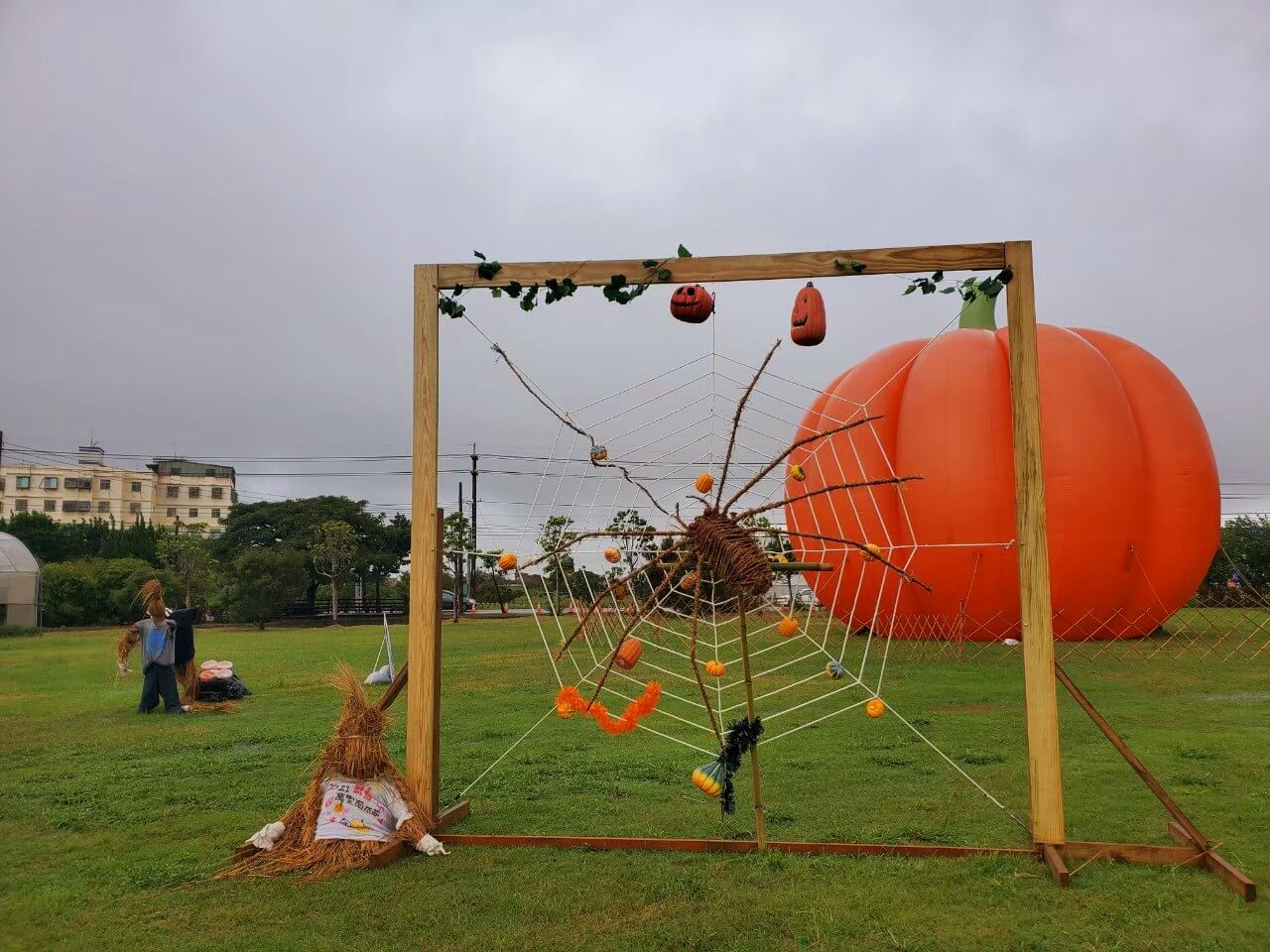 不過桃園景點 觀音南瓜節的造景蠻好拍的,是南瓜搭配上萬聖節主題,除了有造景和攤販以外,桃園景點 觀音南瓜節還有設置南瓜節鬼屋在另一個方向,從瓜果廊道走過去就能來到鬼屋的位置