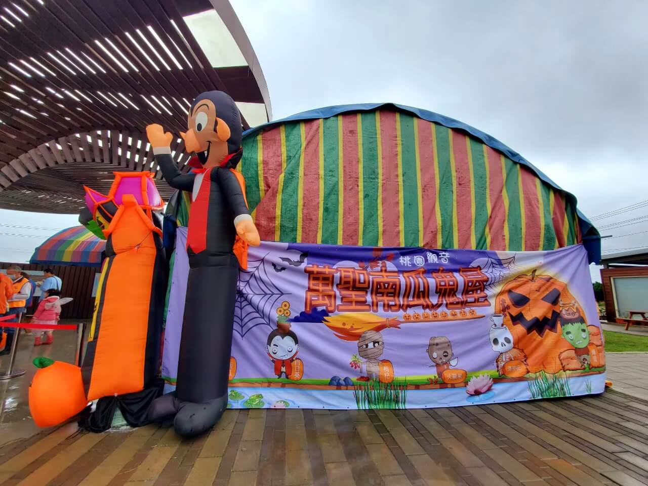 要進去鬼屋裡面需要另外付門票,不過我們已經先線上報名套票,就不用再另外付費用,可以看到桃園景點 觀音南瓜節這次準備的鬼屋是以充氣氣球為主,從外觀看起來是不可怕,也沒有限制年齡