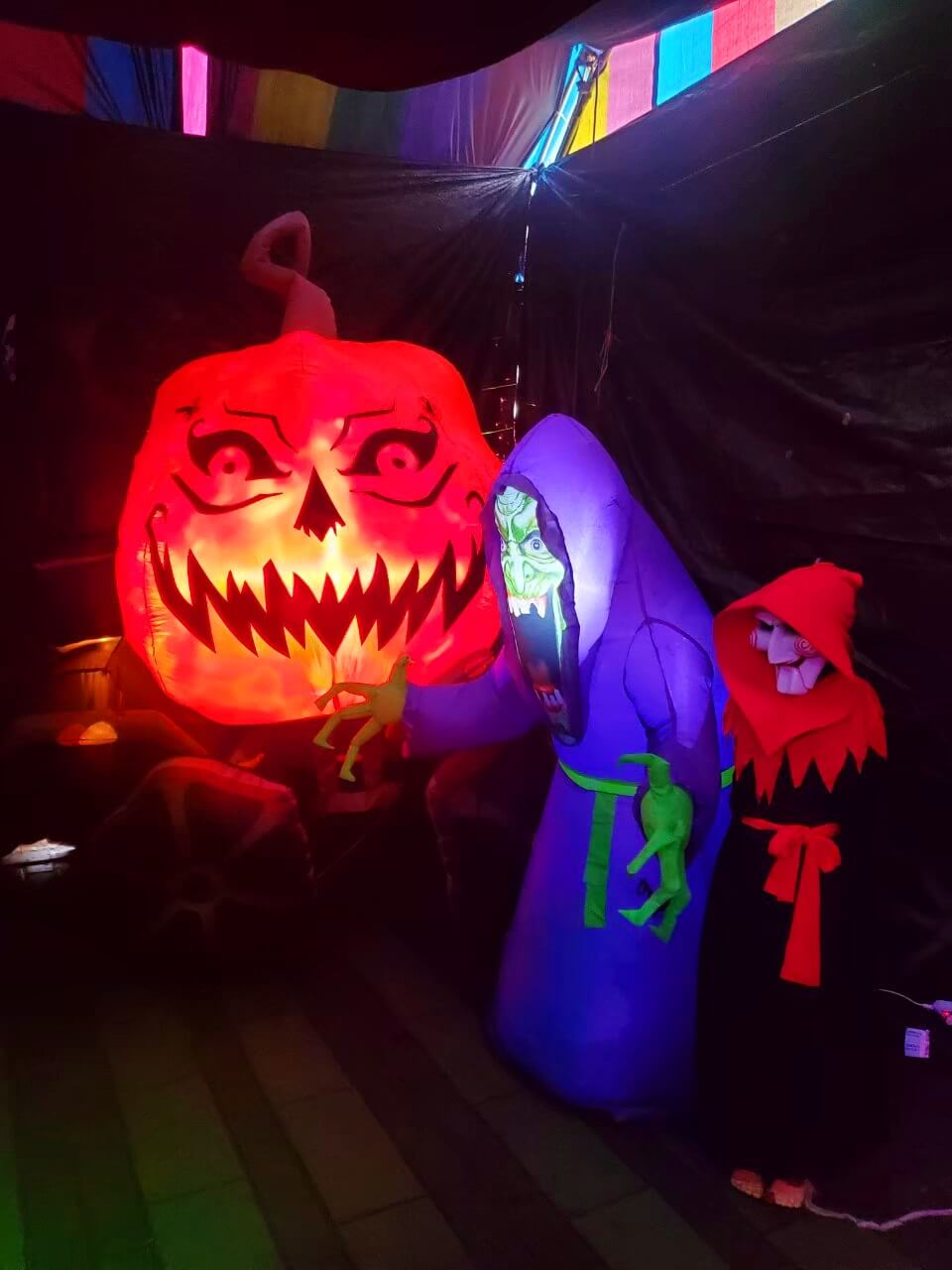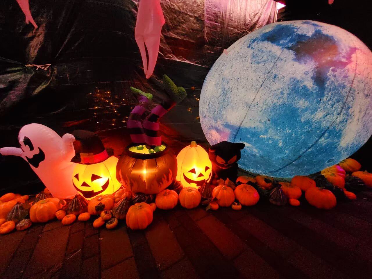 一進去可以看到很多大大小小可愛的南瓜,整體空間上也感覺比較明亮,小朋友進來都不會害怕,但是一進到下一個空間時,鬼屋的佈置就會比較恐怖一點,一些比較膽小的小朋友就會感到害怕