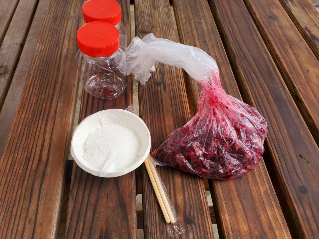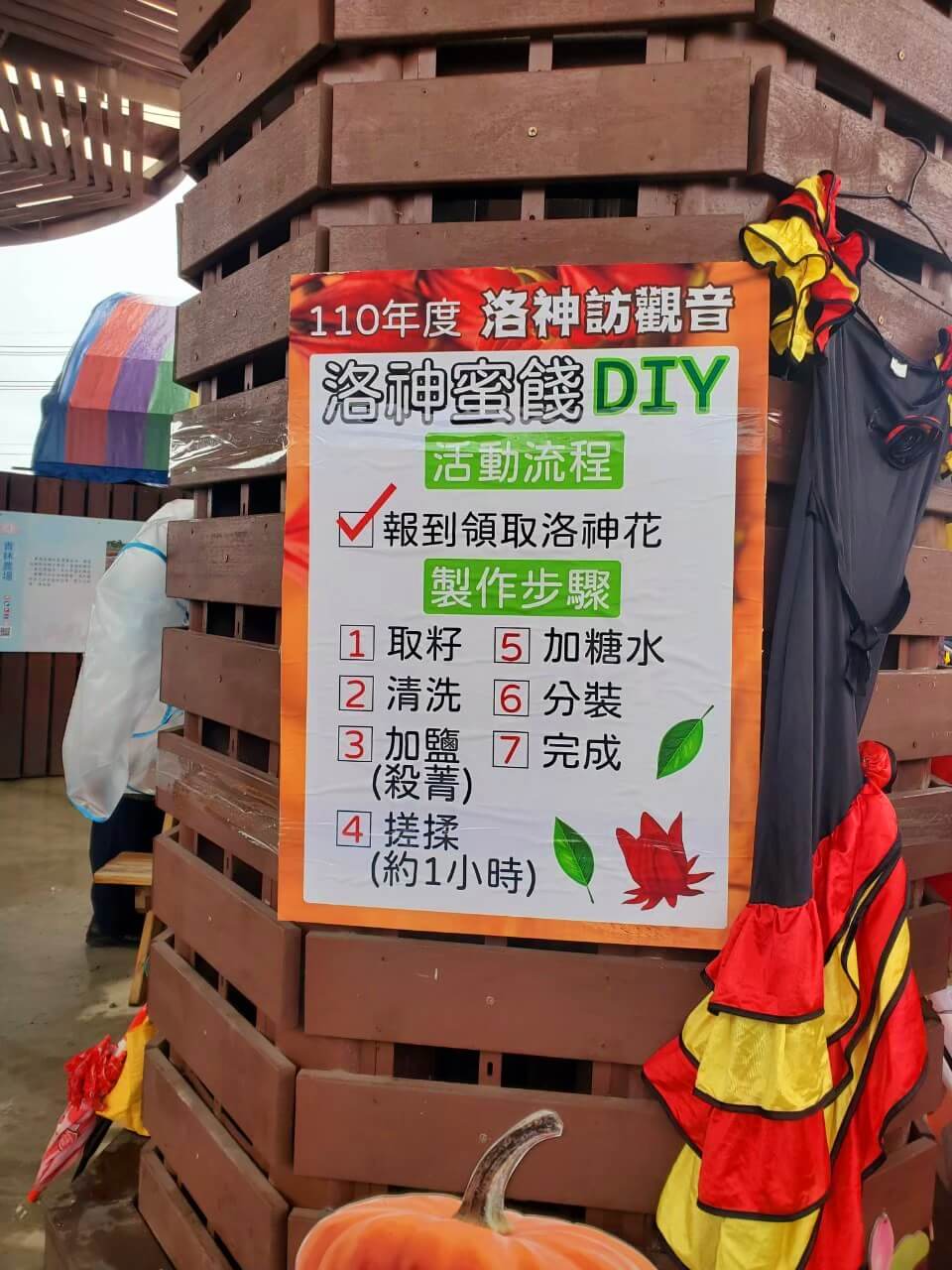 桃園景點 觀音南瓜節的鬼屋不大,在裡面拍照停留大概10~15分鐘就可以出來了,從鬼屋出來以後,我們到旁邊的座位區體驗洛神花蜜餞DIY,沒想到製作蜜餞的步驟這麼多,平常也沒看過洛神花的樣子,今天一看才發現跟我想像中的差好多