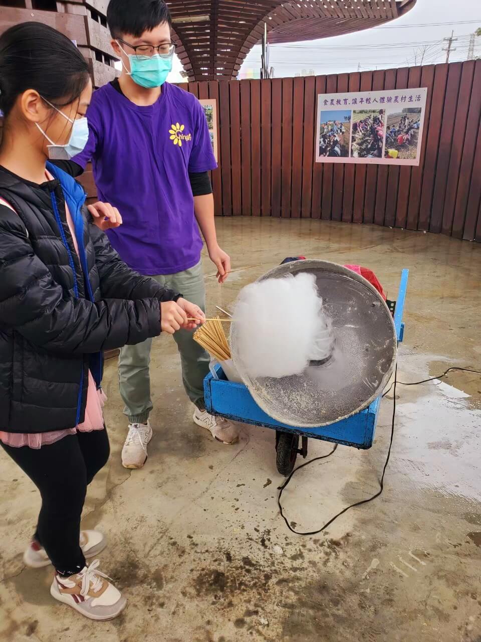 線上報名還可以在現場體驗做棉花糖,我和小跟屁蟲都有體驗,他還會讓你試看看你可以拉多長,可惜今天風太大,一下子就斷掉了