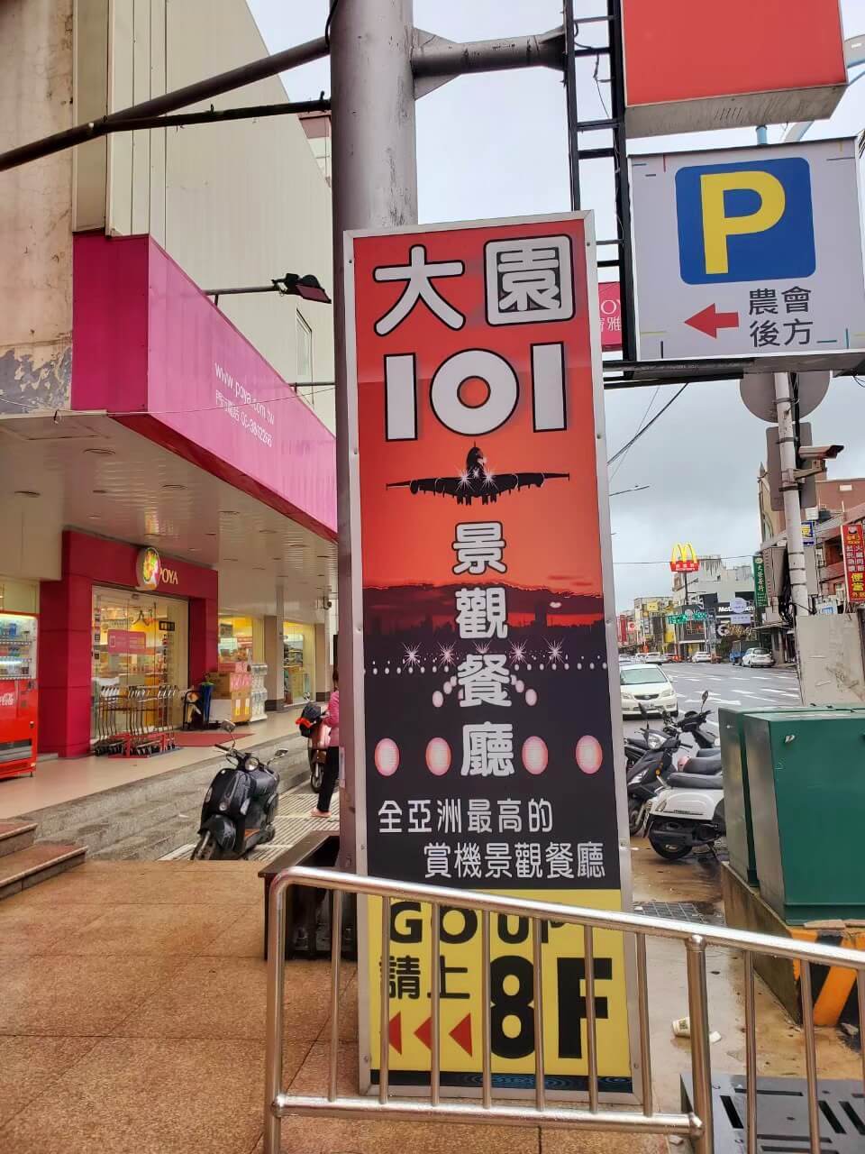 桃園景點 大園101景觀餐廳位在全國電子樓上8樓,如果沒特別注意很容易就錯過,桃園景點 大園101景觀餐廳沒有自己的停車場,但是在建築物後方有一個農會的停車場,位置雖然不多,但是我們當天到訪的時候,還蠻多位置的