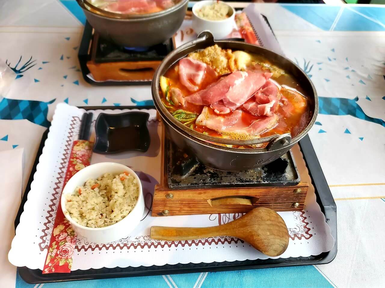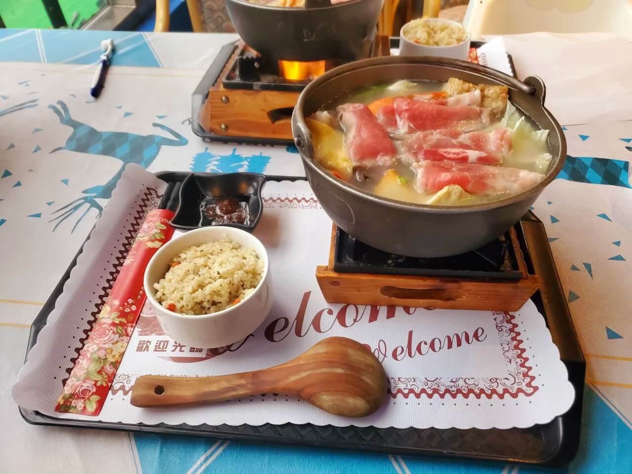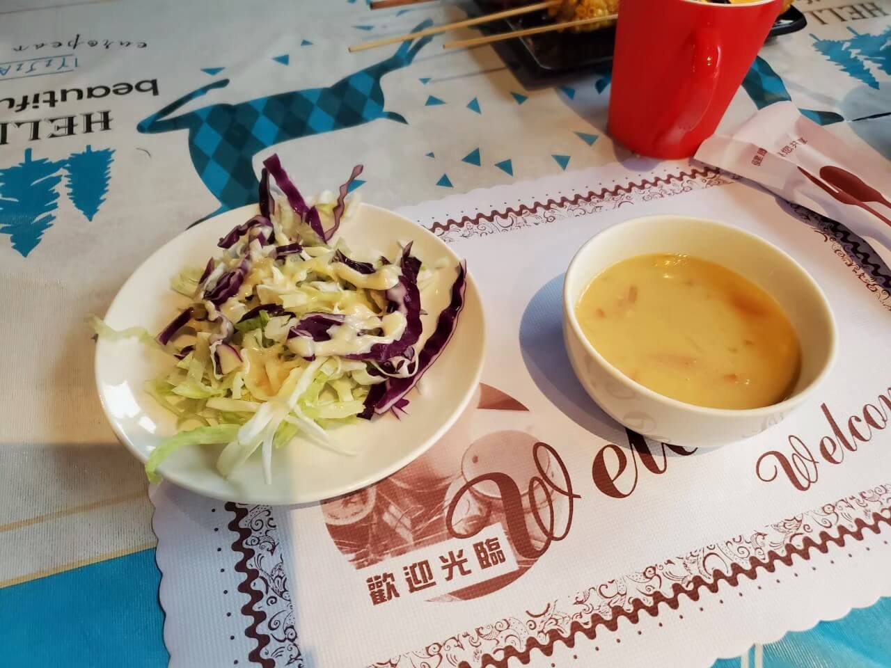 我們當天點了兩份火鍋和一份排餐,價錢以景觀餐廳來說不貴,排餐還有附上沙拉、濃湯、香料飯及飲料,我個人覺得CP值算蠻高的
