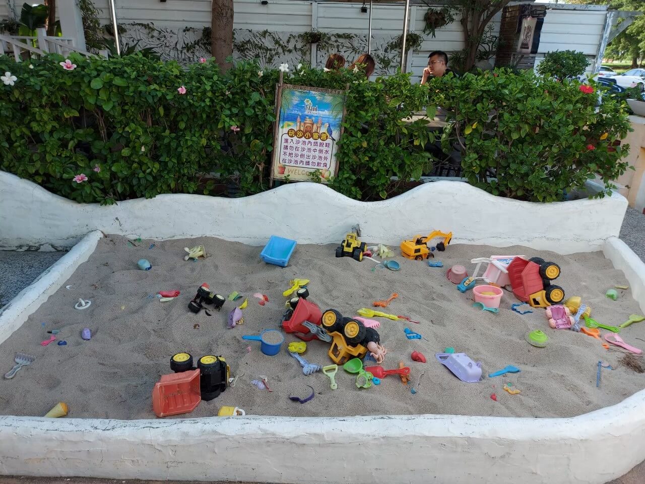 新北景點 小島泰式料理雖然不是主打親子餐廳,但是他的戶外有一區塊是兒童沙坑區,裡面還有各式各樣的玩具,愛玩沙的媛媛一看到就興奮不已