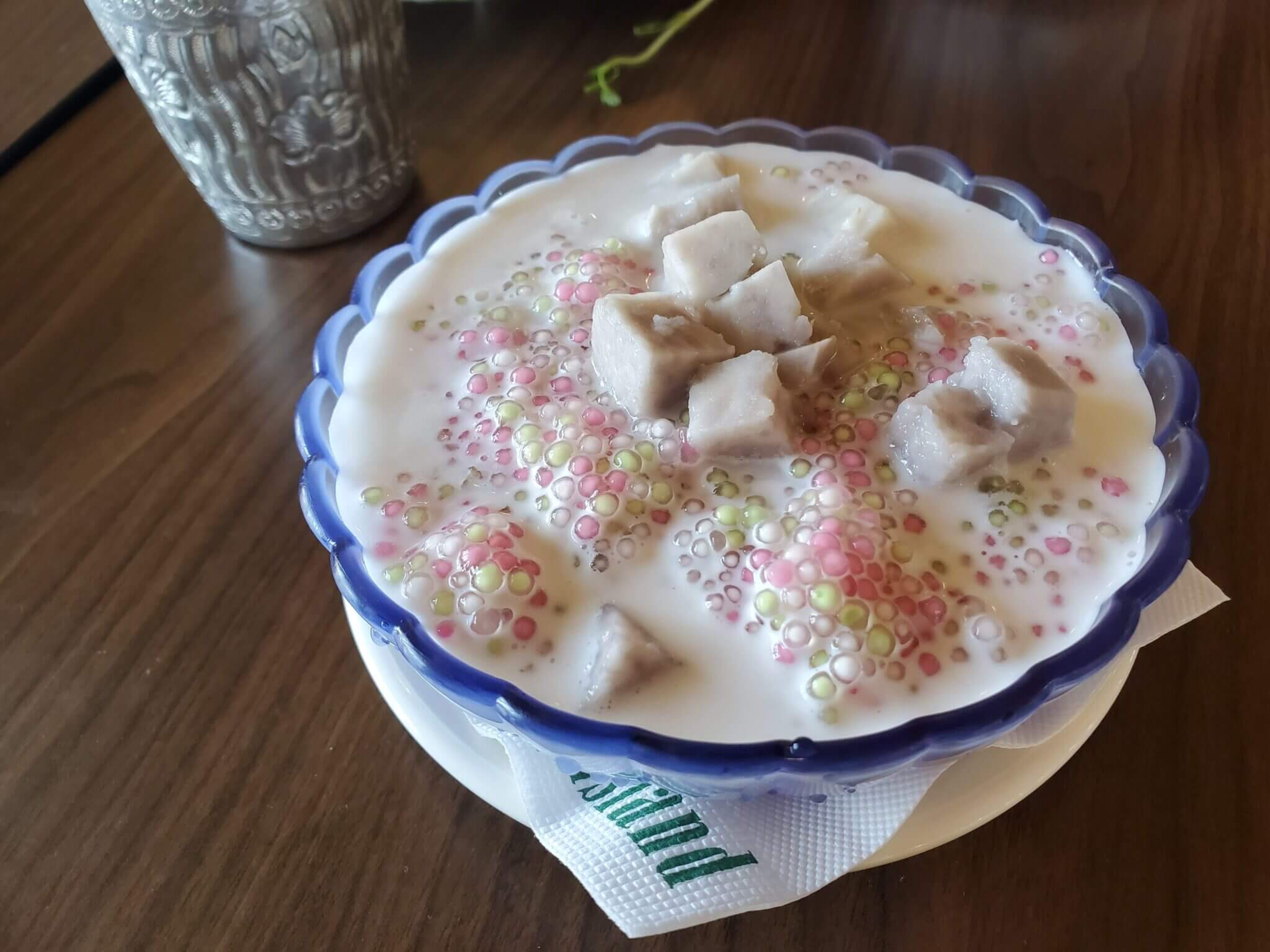 而餐後送上來的椰香西米露也是香甜好喝,不過裡面有放芋頭塊,不喜歡芋頭的人可能就不怎麼合胃口