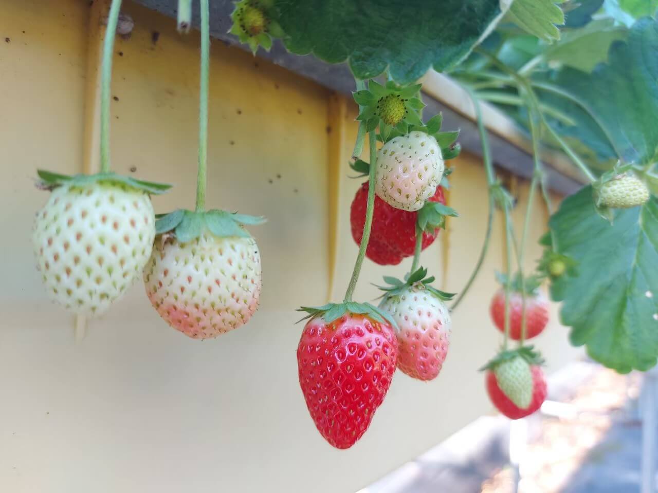 不過當天不知道是因為草莓季剛開始而已所以產量不高,還是因為我們到達時已經下午能夠採摘的草莓數量真的是少之又少,不少草莓還都是呈現白色的,我們在草莓園裡待了1個小時,摘下來的草莓半籃都不到,讓人覺得有點掃興