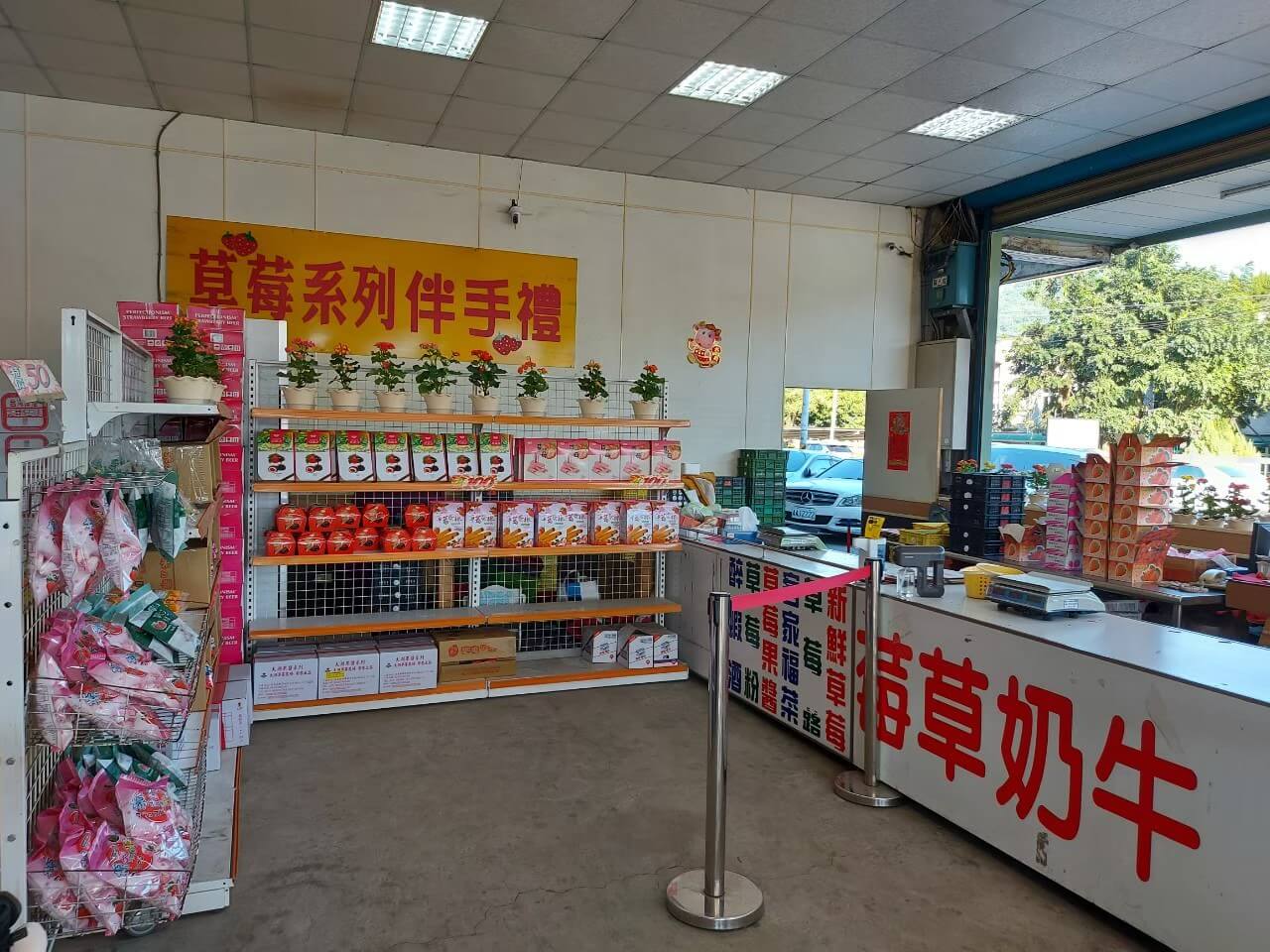 苗栗景點 六合高架草莓農場除了提供採草莓服務以外,也可以直接購買他們整盒販售的草莓,一旁也有提供草莓系列的伴手禮可以挑選,只是種類不多