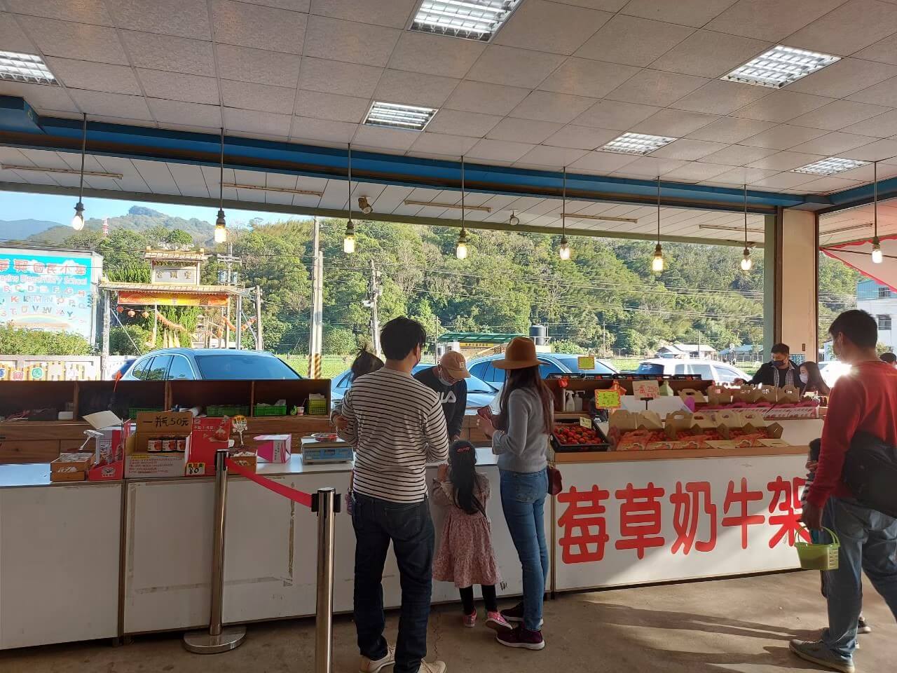 在休息區提供了些許的座位能夠讓大家坐著休息吃東西,也可以將剛剛摘下來的草莓清洗現場直接吃,一旁也有販售草莓系列產品,像是草莓牛奶、草莓冰淇淋等等,能夠滿足口慾