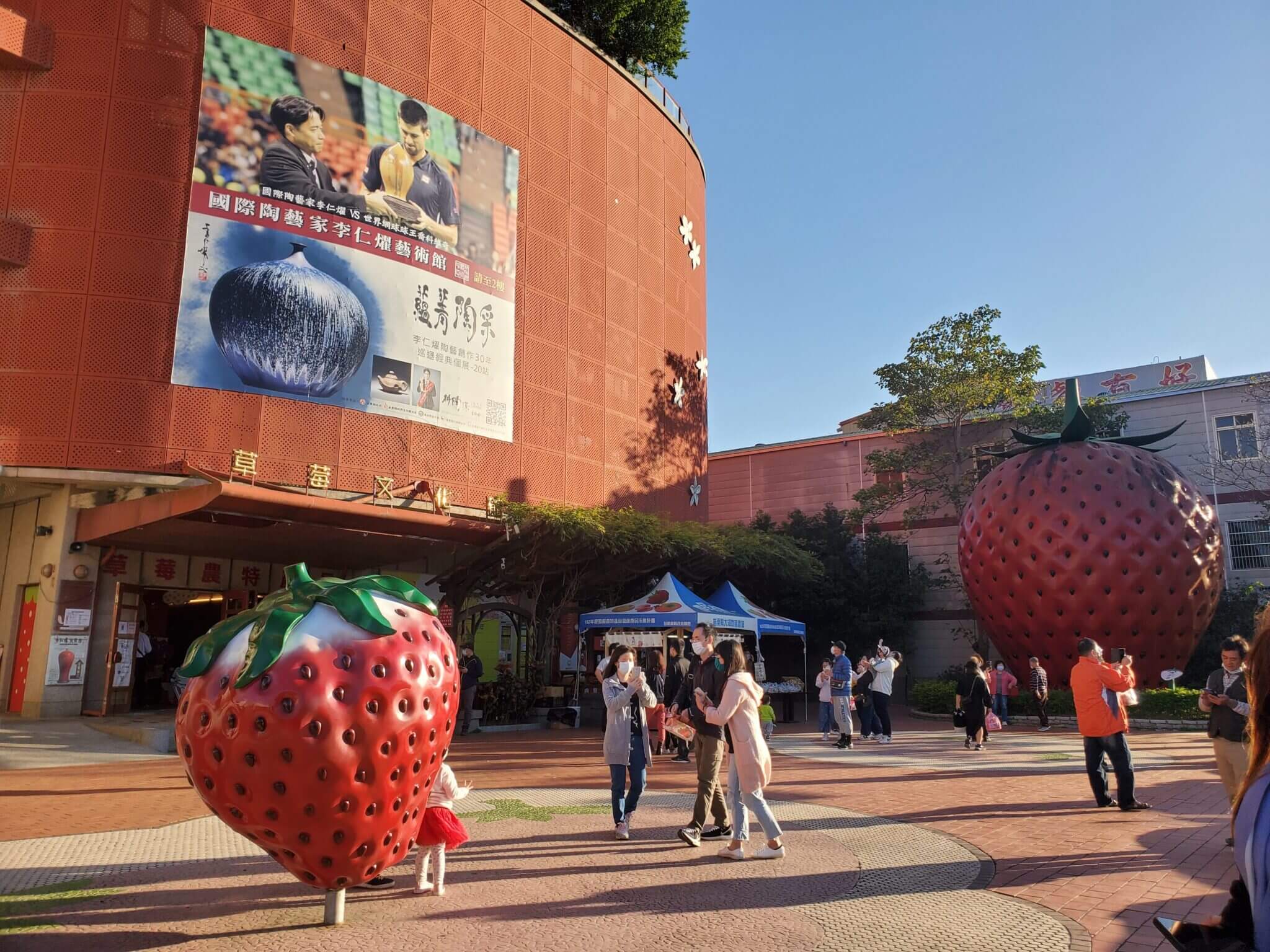 苗栗景點 大湖酒莊的前方廣場有兩顆超吸睛的大草莓,來到這裡沒和這兩顆草莓拍照就好像沒有來過一樣