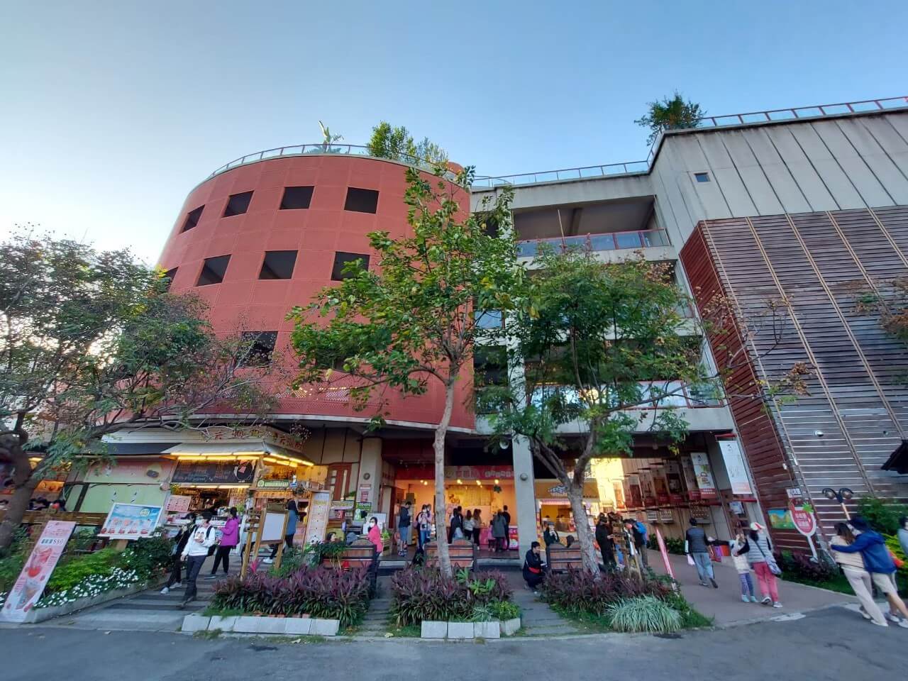苗栗景點 大湖酒莊這一棟圓形紅色建築是草莓文化館,裡面總共有五層樓,其中一樓則是販售草莓伴手禮的地方,幾乎什麼產品都有,不過這裡也是人潮最擁擠的地方,我們當天到訪的時候可以說是寸步難行